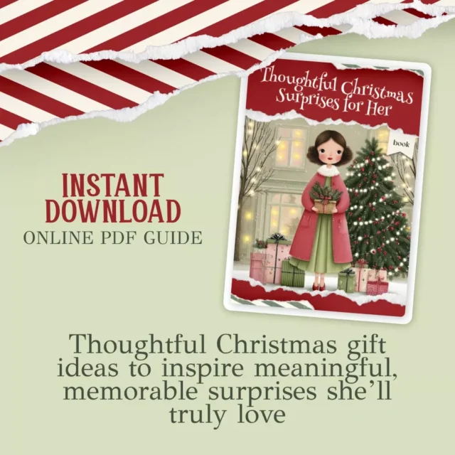 Download Thoughtful Christmas Surprises for Her today and start planning gifts she’ll remember long after the holidays are over. Give with intention. Surprise with meaning. Make her feel truly seen and cherished.